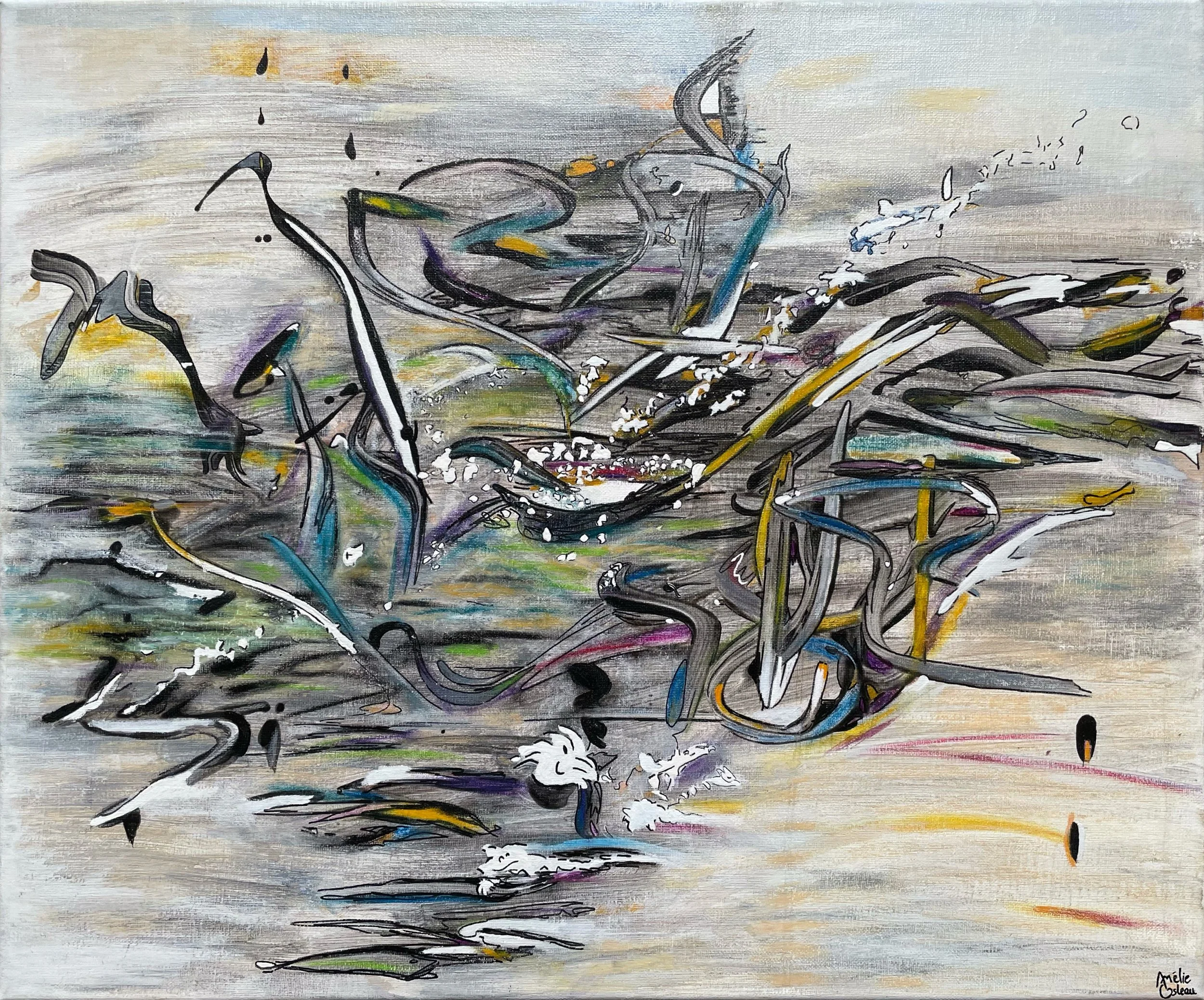 Cette série “D’après Zao Wou-Ki” est née suite à ma visite de l’exposition “Il ne fait jamais nuit” de Zao Wou-Ki en 2021 à Aix-en-Provence. J’aime profondément les peintures abstraites de cet artiste. Ses compositions au trait calligraphique m'émerveillent et quelles que soient les couleurs, je trouve leur vivacité incroyable !