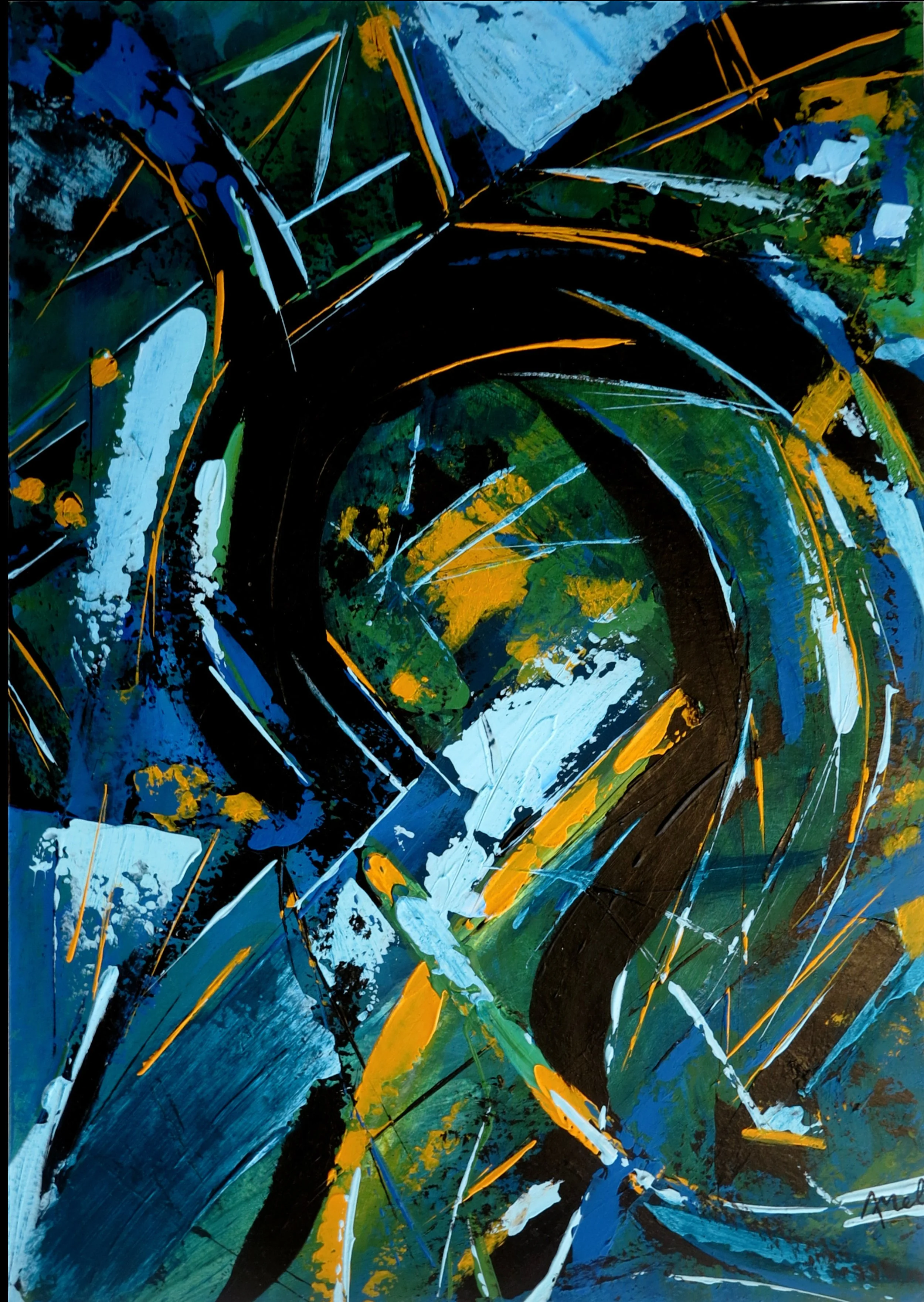 Chaque peinture abstraite a son histoire. Elle peut parler autant de notre vie intérieure que de la vie que nous partageons toutes et tous sur Terre.